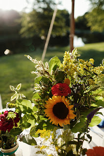 I LOVE COLOR! In her bouquet: Veronica, Anenomes, Zinnias, Scabiosa Pods, Monte Casino, Bupleurum, Delphinium, Seeded Eucalyptus, Fever Few, and Solidago!